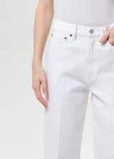A modern take on a vintage-inspired silhouette. The 80’s Jean features classic five-pocket styling with subtle crease detailing, creating a polished yet relaxed shape. Done in a clean white denim, the straight, easy leg delivers a clean, timeless look.