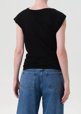 The Beth Tee features an asymmetrical neckline and cap sleeve for a subtle twist on the everyday tee. Cut from lightweight, ultra-soft organic cotton jersey in true black, it’s both minimal and elevated. Pair with high-rise denim or trousers for a clean, modern look.
