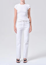 A must-have for the season, the Lana is our original relaxed straight. Designed with a straight top block and an easy, vintage-inspired leg, it delivers a clean, timeless silhouette that feels both effortless and elevated. Rendered in a soft clean white denim, it’s crafted from non-stretch regenerative cotton with a soft hand feel for all day comfort and structure.