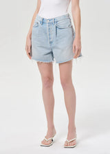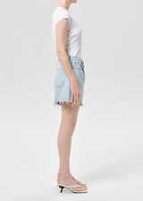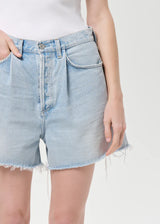 The Rhoda Short features a relaxed fit with a high-rise waist and a softly structured A-line silhouette. Designed in a light to medium vintage indigo wash, the refined pleat detailing adds subtle dimension and elevates the clean, streamlined shape. Crafted from non-stretch 100% regenerative cotton denim with a soft hand feel, it offers all-day wearability while maintaining its crisp structure. Pair it with a tucked-in tank or an airy button-down for an effortlessly elevated warm-weather look.