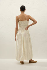 COTTON YARN DYE FABRIC - MAXI DRESS - SHIRRED BODICE - THIN ADJUSTABLE STRAPS - GATHERED A-LINE SKIRT - UNLINED