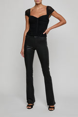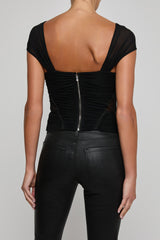 An infinitely flattering corset top, constructed with figure-defining grosgrain seams and a beautiful sweetheart neckline. Now back in black.