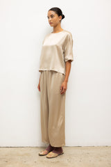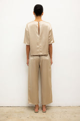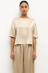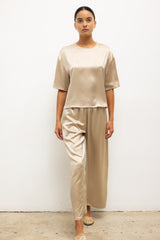 Cut in our best-selling, Japanese-crafted Barb Satin, The Barb Contrast Tee features a clean crew neckline, short sleeves and a boxy fit. Finished with a Créme contrast selvage that can be versatilely rolled up or down,