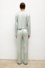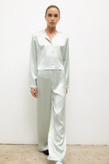 Cut in our Japanese-crafted Barb Satin, The Barb Wide Leg Pant is an easy pull-on silhouette that features a thin elastic mid-rise waistband and a relaxed, perfectly draped wide leg.