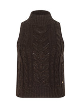 The Bellini tank brings fresh edge to classic knitwear. Spun with metallic yarns, this sleeveless cable-knit turtleneck shimmers with dimension. Wear it solo, layer under jackets, or throw it over a blouse — the styling options are endless.