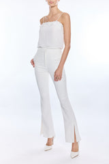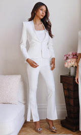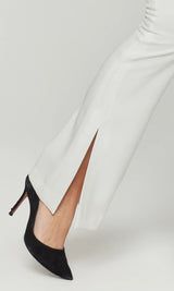 Sleek, modern, and endlessly flattering, the Benita Slit Pants elevate any outfit with clean lines and a polished silhouette. Designed in crisp white crepe, this tailored pant features front slits for a leg-lengthening effect and effortless movement.