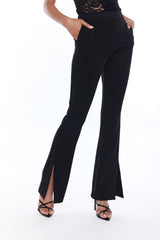 Sleek, modern, and endlessly flattering, the Benita Slit Pants elevate any outfit with clean lines and a polished silhouette. Designed in classic black crepe, this tailored pant features front slits for a leg-lengthening effect and effortless movement.
