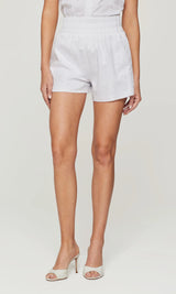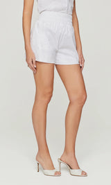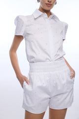 The Betty Pearl Embellished Poplin Shorts add a playful touch of polish to warm-weather dressing. Made from crisp black poplin and adorned with delicate pearl accents, this relaxed silhouette combines ease and sophistication. Pair them with the matching Murphy Pearl Embellished Poplin Shirt for a coordinated, effortlessly elevated look.