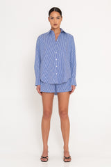 The Cannes Shirt is made from a lightweight, airy striped fabric and features delicate rhinestone embellishments that shimmer with every movement. Its relaxed silhouette and subtle sparkle create a sophisticated yet effortless piece, perfect for adding a touch of radiance to your warm-weather wardrobe.