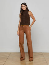 Clayton is our tall wide-leg pant, featuring a flattering, slim fit through the hips and a contoured waistband that sits securely at the natural waist without gaping. Now back in a light cognac leather-look coated denim.