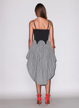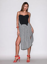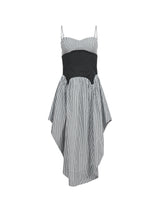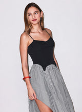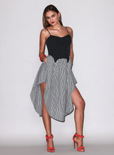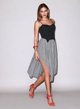 Our lightweight cotton Poplin Cupped Midi Dress, featuring color-block corset inspired underbust & garter seaming details with adjustable straps and invisible zip closure. Flirty full volume skirt with higher cut hemline at sides. We love it layered over the Charlotte Lace Seamless String Cheeky.