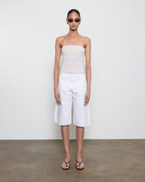 Cotton bandeau with stripe detail and built in shelf bra. Layer over tees and shirts or wear on it's own.