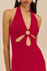 A halter knit midi dress defined by hand-covered rings and front cutouts, reimagined from our best-selling Franco Dress silhouette.