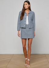 The jean mini skirt has a whole new look. Crafted from textured indigo and white striped denim for an effortlessly undone vibe, the Jolene signals off-duty ease.