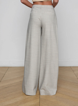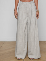 Fitted through the hips and relaxed through the leg, the Allanah is a polished, modern trouser with a flattering fit. Now back in a gray and tan pinstripe.