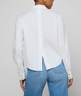 The Cosette poplin shirt in white is a L’AGENCE core essential. Featuring a cool, borrowed-from-the-boys fit and cropped high-low hem, this classic tailored shirt goes with anything and everything.