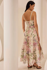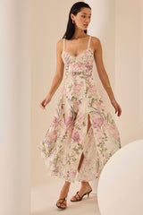 Be embraced by the elegance of the IRASO dress, a long piece that blends romance and freshness in every detail. Crafted in cotton with a delicate floral print, it features fine straps for a light touch and a flared skirt that flows naturally, creating movement and a graceful silhouette. A versatile and feminine design, perfect for summer looks with timeless charm.