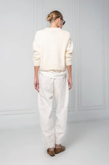 The Sora Sweater is crafted from 100% cotton with a timeless V-neck silhouette. Soft yet structured, it’s the piece you’ll always reach for—season after season, outfit after outfit. An effortless essential designed to live in your closet on repeat.