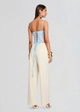 The Moxie Top delivers a modern take on timeless femininity. The Moxie features a sculpted corset silhouette with a soft scoop neckline and supportive boning. The bold floral print brings fresh energy, while the lace-up back adds a customizable fit. Perfect for daytime plans that turn into evening moments, this top is designed to move seamlessly through your day. Shown here in Bleu Fleur Tropicale.