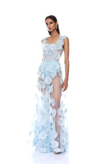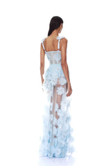 Exude elegance and sophistication in the Rosalie Powder Blue Gown.