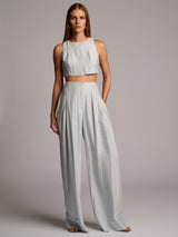 The Terrel Top is a clean, structured crop cut in a lightweight linen blend. Designed with a high neckline and tailored seaming, it offers shape while maintaining an easy, minimal feel. The cropped length sits neatly at the waist, creating a sharp, modern proportion.