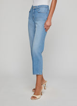 An easy straight leg with a little attitude. This stovepipe jean has a relaxed, slouchy fit that rests at the hip and falls clean through the leg. The light blue wash and laid-back cut keep this fit timeless yet in-the-now.