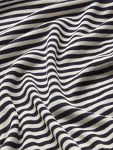The Striped Knit Sweater is crafted from a blend of eco-ver modal and high-twist cotton, featuring a soft bubble sleeve with blouson volume and a ribbed hemline.