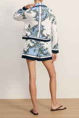 Crafted from breathable stretch-cotton terry, the Tijana short features a scarf-inspired botanical print in blue and white, with navy trim for graphic contrast. Effortless and relaxed, it's finished with an elastic waistband for maximum comfort. Pair with the coordinating Novella shirt for a high-impact matching set—or with swimwear for a chic beach-to-boardwalk moment.
