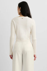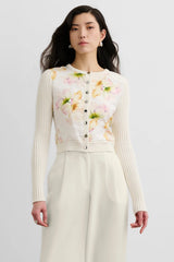 The Miriam Silk Combo Cardigan is a fitted crewneck cardigan with a clean, cropped silhouette for a polished finish. Wear it buttoned up with tailored trousers for elevated everyday styling, or layer it open over a sleek tank with denim for effortless off-duty wear.
