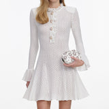 Self-portrait - Pointelle Knit Mini Dress - White