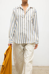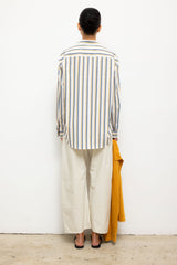 Leset - Yoshi Stripe Classic Oversized Button Down - Parchment Choco Leset Blue Stripe