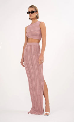 The Jasmine Crop is an asymmetrical top made from a textured knit.