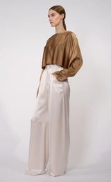 Our Paris Pant is a high-waisted, wide-leg pant made from 100% polyester. Simple, yet elegant the silky look elevates the overall appearance of the pant. The small touches such as pleats and the front zipper closure make them all the more unique.