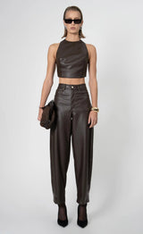 The Perrie Crop is a sleek faux leather top designed with a high neckline and finished with a clean back zipper. Effortless to style with denim, tailoring, or paired back to the matching Lennon Pant, it’s the perfect piece to transition between seasons.
