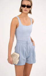 The Tatiana Shorts redefine effortless tailoring. High-waisted and pleated, they offer a relaxed yet polished silhouette that’s easy to style. Pair them with any top for a casual look, or elevate the outfit with the matching Lydia Vest for a more refined, dressed-up vibe.