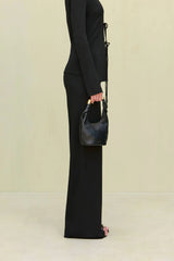 A bias cut sleek jersey pant designed to hit at the mid to high waist.