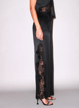 Our Juliet Lace Lounge Pant, made from luxe silk charmeuse with lace side paneling. Features flat front waistband with elastic ruching at back for comfort. Invisible zipper at the center back & side seam pockets.