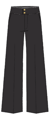 The Prim Trouser offers a sculpted, wide-leg silhouette in a fluid blend, finished with two gold knot buttons and functional side-entry pockets—designed to pair back to the matching Prim Jacket