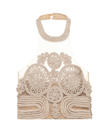 This top is part of our PatBO X Camila Coelho Capsule Collection it features a sheer fabric underlay in the front with an embroidered jersey detailing throughout into the full jersey low back design. Button closure at the neck and exposed zipper. Seen paired with our Dune Jersey Maxi Skirt.