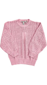 Multiple design elements seamlessly combine in this airy autumnal style. Featuring a crew neckline, ¾ puff sleeves, ribbed lining, and a woven tile stitch, this piece brings craftivism and luxury together.