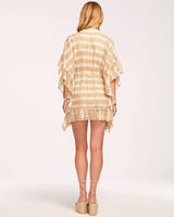 Settle into vacation living in the Malia, a foil printed striped lace coverup that showcases the impact of throw on and go style. Made to pair over your bathing suit of the day, tie this style at the waist and let the open silhouette keep curves on display.