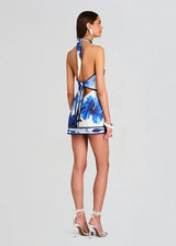 Introducing our Adelaide Dress, featuring a captivating halter neck and alluring open back design. Embrace the essence of paradise with this stunning piece that seamlessly combines elegance and allure. Crafted with silk fabric and adorned with a vibrant tropical print, this mini dress evokes the spirit of summer in every detail. The halter neck adds a touch of sophistication, while the open back design exudes effortless charm, making this dress perfect for sun-soaked days and balmy nights. Shown here in Terracotta Bandana.