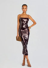 Turn heads at your next special event with the Alana Sequin Dress. This breathtaking midi features shimmering sequins that catch the light with every move, while the sheer fabric adds an extra layer of intrigue. Perfect for those who want to leave a lasting impression and make a bold statement wherever they go. Shown here in Port.