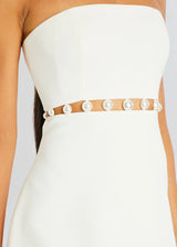 Make a statement in our exquisite Katie Dress. This stunning piece, crafted from luxurious fabric, features intricate pearl detailing and a flattering silhouette. Perfect for a black-tie gala, a glamorous cocktail party, or a night out on the town, this dress is designed to turn heads and leave a lasting impression. Shown here in White.