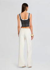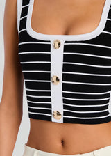 Make a statement in our effortlessly chic Zadie Top. Featuring a flattering square neckline, gold button accents, and a comfortable ribbed knit fabric, this top is perfect for both casual outings and dressier occasions. Pair it with the our Clarissa skirt for a complete look or dress it down with your favorite denim. Shown here in Metallic Black/White.