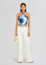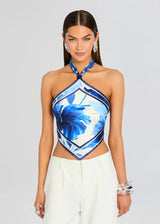 Embrace the essence of summer with our Jamie Top. This halter neck top seamlessly combines luxury with head-turning elegance. The alluring open back adds a touch of allure, while the asymmetrical hem lends a contemporary flair to your look. Perfect for daytime outings or evening soirées, this top is a versatile piece that exudes effortless charm. Pair it with your favorite denim for a casual yet chic ensemble, or dress it up with tailored trousers for a sophisticated evening look. Shown here in Azure Primavera.