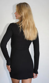 Fitted mini dress with symmetrical cutouts at the chest and the waist