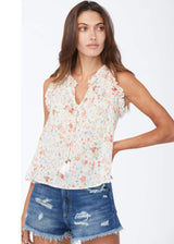 Floral and flirty, the Valentine is feminine perfection. This is the top of the summer. Ruffle trim on the armhole and a split neck fit, this will be your favorite top for seasons to come.