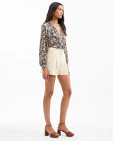 An elevated take on the weekend short, in summer-ready ecru. Expertly tailored from premium stretch cotton, the Devina short features a high waist, side slip pockets, and a chic A-line silhouette. Pair with tanks and tees for ease—and, for a dose of effortless polish, wear with matching blazers and vests.