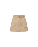 The ease of denim in a chic little mini. Made from premium non-stretch cotton in a faded khaki wash, the Stelene mini skirt features an A-line silhouette and a classic five-pocket design. Endlessly versatile, it's the essential warm-weather uniform. Just pair with a ribbed tank and strappy sandals or sneakers—pure off-duty chic.